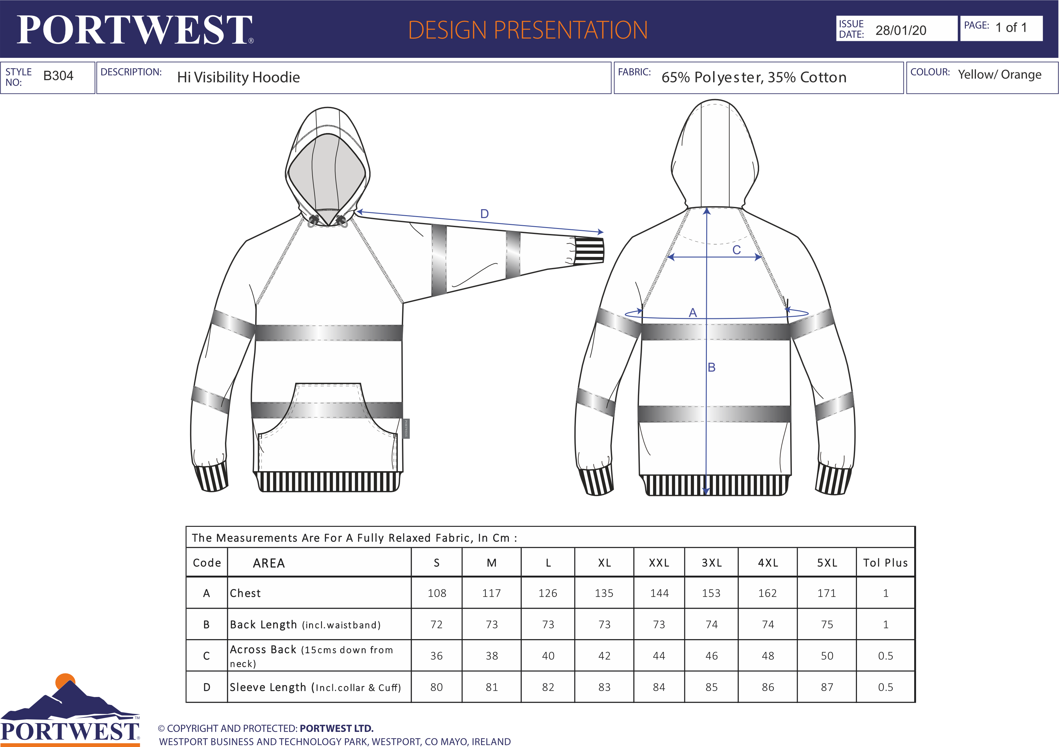 Portwest Hi-vis hooded sweatshirt (B304) B304
