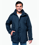 Polyester outer with PVC coating. Polyester mesh body lining.Polyester sleeve lining.Waterproof with taped seams.Detachable mesh lined hood with stud closure, toggles and visor.Fleece lined collar.Collar high full length zip with studded storm flap.Three front zip pockets.Adjustable tear release cuffs.Drawcord hem.Zip access for decoration.Zip out polyester fleece jacket.Collar high full zip.Open cuffs and hem.