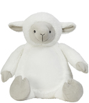100% polyester. Soft plush cream lamb.Contrast face, hands and feet.Sewn eyes and mouth.White coloured panel on tummy.Removable inner pad.Zip access for decoration onto front panel.Suitable for embroidery, print and sublimation.