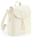 100% organic cotton canvas. Premium heavyweight fabric.Grab handle.Self fabric adjustable shoulder straps.Fold over flap with press stud.Rope drawcord closure.Capacity 5 litres.