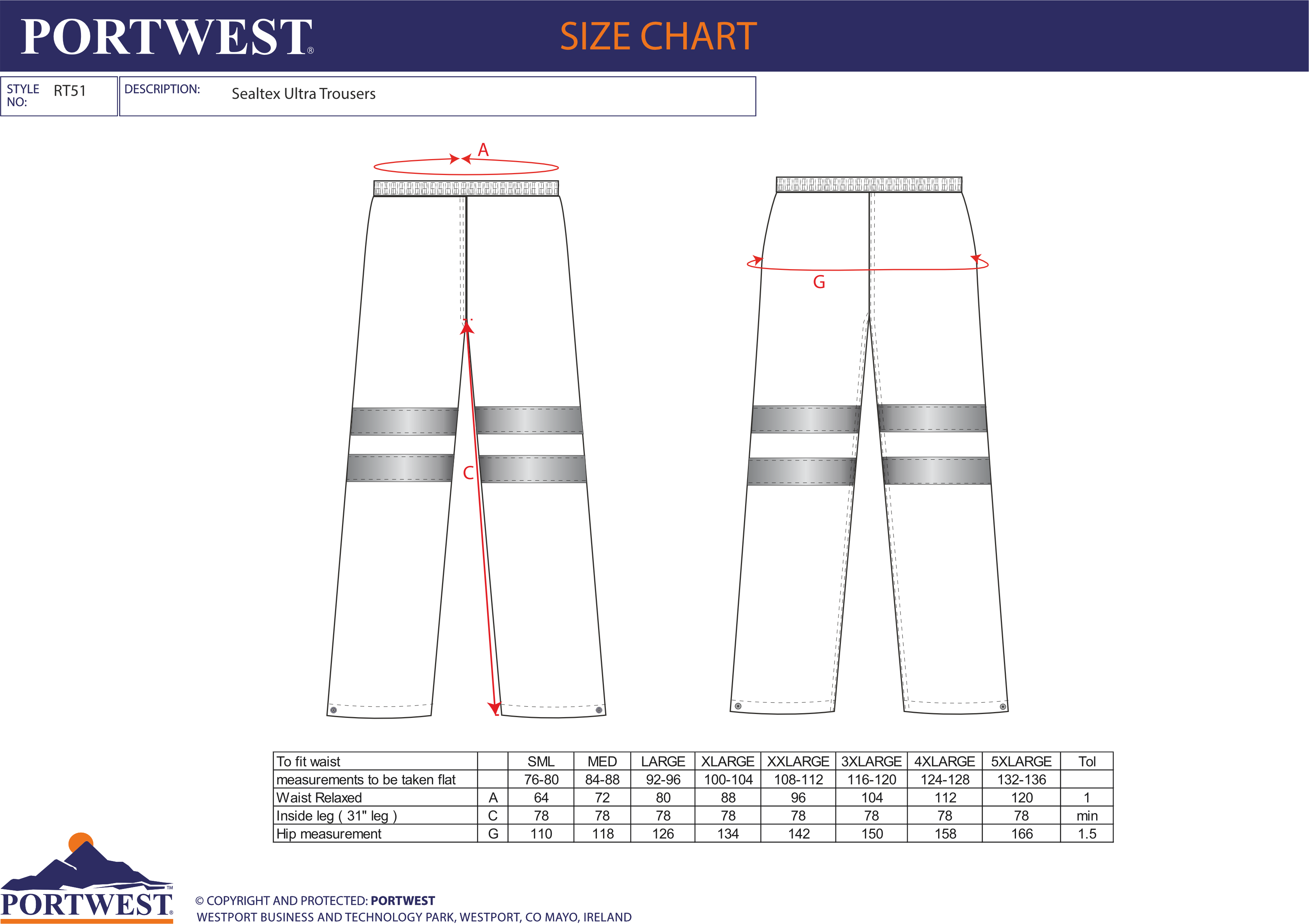 Portwest Sealtex Ultra Hi-Vis Rain Trousers RT51