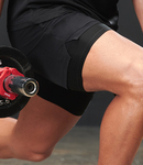 90% polyester/10% elastane. 88% polyester interlock/12% elastane under shorts. Four-way stretch microfibre short. Integrated under short with wicking properties. Elasticated waistband with inner drawcord. Two side zip pockets. Concealed media pocket on under short. Side vents. Tear out label.