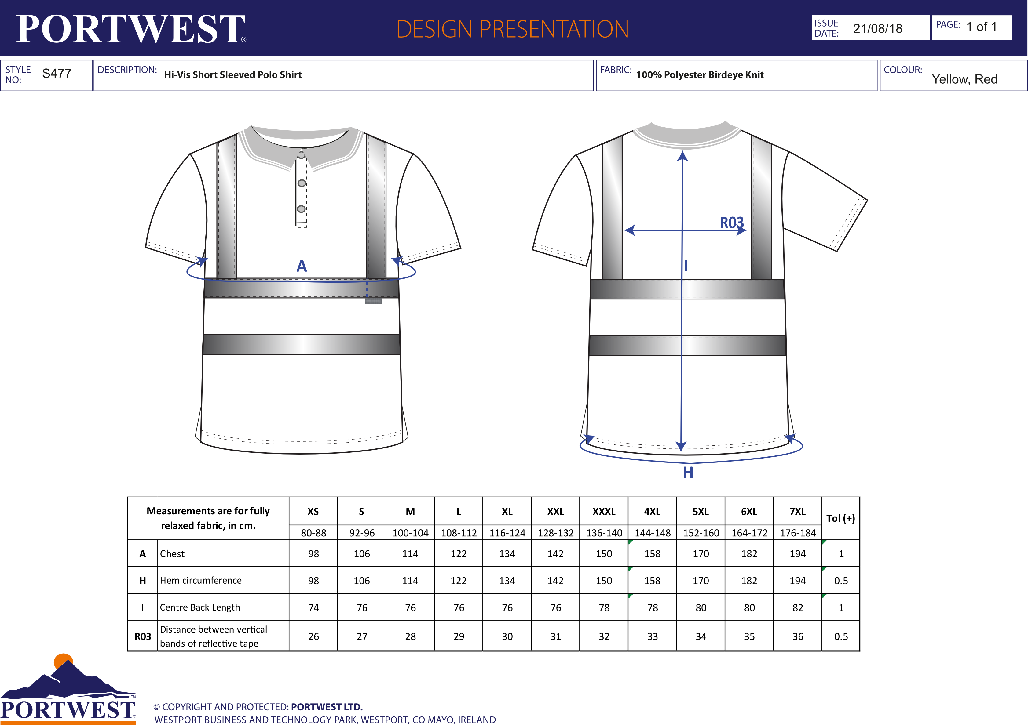 Portwest Hi-Vis Polo Shirt S/S S477
